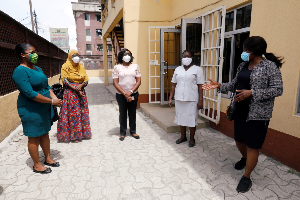 Outside the Lagos clinic where Fadare's teams meet, life goes on as normal. Men sit around on plastic chairs, women sell instant noodles, and yellow minibuses weave through the streets. Nobody keeps their distance, and those who wear masks pull them down to speak.