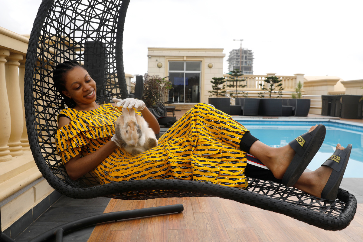 Sandra Dozie has a fluffy new friend to keep her company during the long tedious hours of a lockdown imposed to curb the spread of the coronavirus - a four-month old rabbit called Coco.