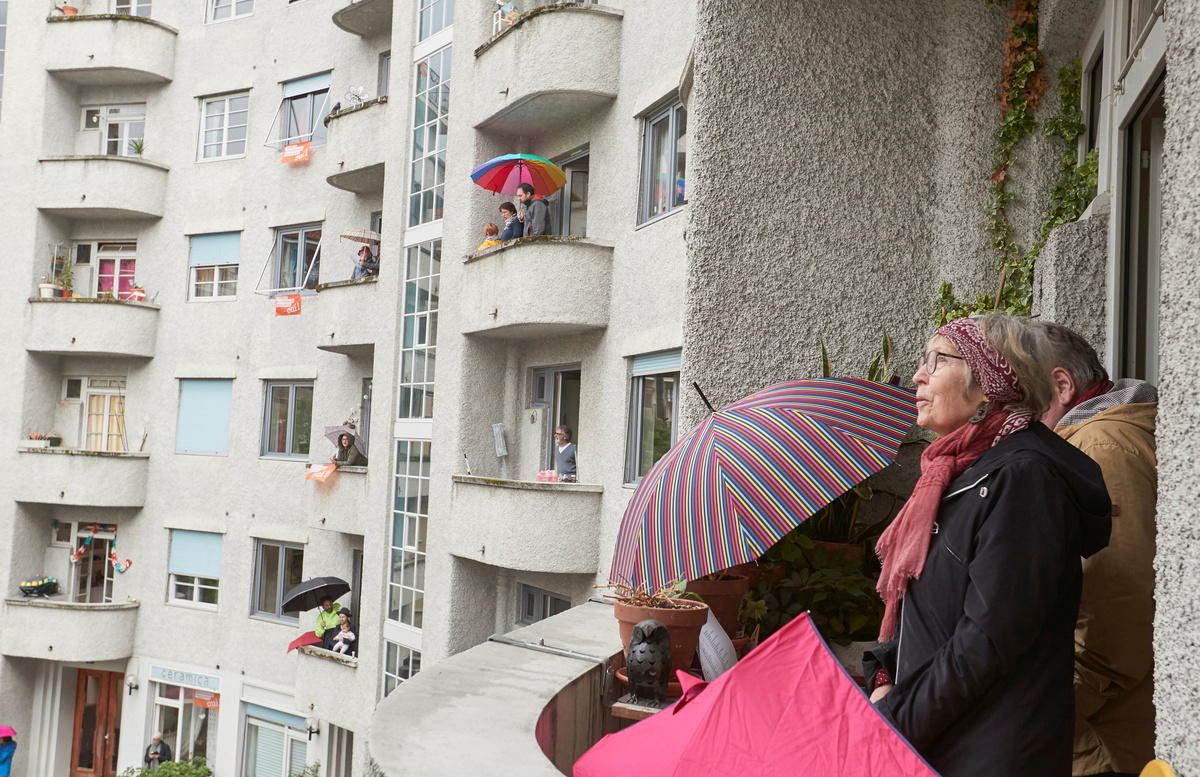 The tradition started in mid-March when the Swiss lockdown began and residents sing and dance to a handful of songs every night except Sundays, taking turns to choose the music.