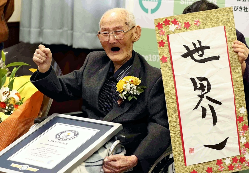 Having moved into a nursing home four years ago, Watanabe now enjoys three meals every day while living his life in a wheelchair. His hobby is calligraphy, and he wrote out "world's No.1" in kanji characters a few days ago. As he enjoyed his celebratory cake on Wednesday, he was asked if he had a message for today's youth. Watanabe is reported to have responded, "I want everyone in the world to do your best."