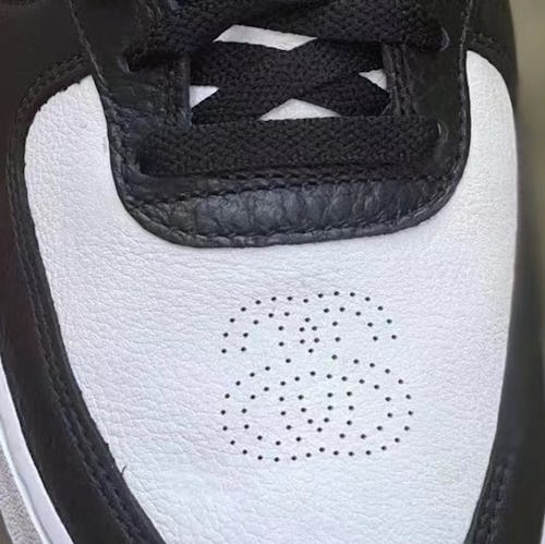 Beyond a black and white color palette, the sneaker offers a tumbled leather upper, replacing the shoe’s typical smooth leather. Stüssy branding appears at the strap and tongue tag, while on the toe box, perforations have been realigned to appear as the label’s interlocking “S” logo. The same motif is seen on the heel, in the form of a bedazzled double “S” charm.