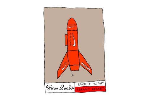 A Rocket from the Tom Sachs: Rocket Factory is composed of three Component NFTs — a Nose Cone, a Body, and a Tail Assembly — and each component is branded with 1 of 30 unique options. There are two types of completed Rocket NFTs, Frankenrockets and Perfect Rockets, with the former consisting of unmatching branded pieces and the latter composed of three matching pieces. The Factory took to Twitter to announce that “any TSRF ‘Astronaut’ holding an assembled Rocket NFT” will be able to claim a pair, meaning a Frankenrocket is accepted as long as it has at least one NikeCraft Component.