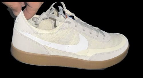 An in-hand look revealed on Instagram by leaker @die_sel666 shows that the shoe features a neutral finish with an almost reflective Swoosh. As opposed to the more outlandish previous releases by Sachs and Nike — like the exploding poncho in 2019 and March Yard overshoe in 2018 — the “General Purpose Shoe” is exactly what its name suggests.