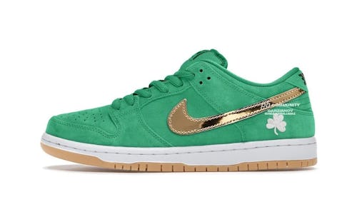 Nike SB never passes up the opportunity to create a holiday-inspired Dunk, be it Valentine’s Day, Thanksgiving, or even 4/20. For this year’s St. Patrick’s Day festivities, the brand has whipped up a green sneaker featuring suede panels, metallic gold Swooshes, and of course, shamrock details.