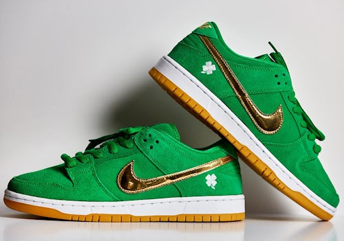 As of now, release details for the St. Patrick’s Day Dunk Lows have yet to be established by Nike SB, although the sneakers’ launch will presumably fall around the March holiday. You’ll have to snag a pair to avoid heightened resale prices — and getting pinched on St. Patrick’s Day, of course. Expect the suede shoes to be in high demand, especially as the SB pair sticks out from Nike’s usual two-toned offerings. As much as we may be sick of the Dunk, this celebratory low-top is one we’ll feel lucky to get.