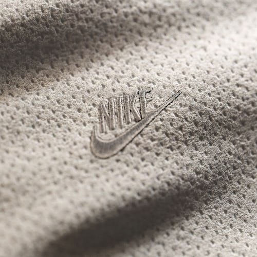 Appropriately, the first styles to boast Nike Forward material are the brand’s beloved gray fleece sweatshirts. The garments flaunt a (figuratively) greener look and lighter feel while still meeting Nike’s Therma-FIT ADV technology standards to offer warmth without added weight. Keeping in line with Nike Forward’s sustainable ethos, the sweatshirts forgo embellishments and dyes, instead favoring raw cut pockets and zero water usage.