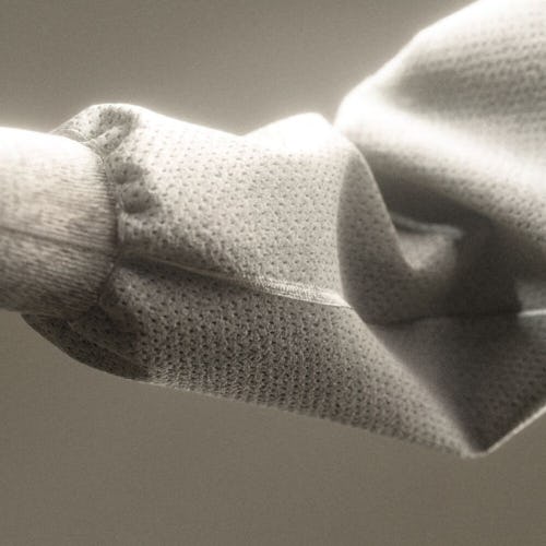 More than five years of research went into the development of Nike Forward, which ultimately seeks to reduce the number of steps in material fabrication. Rather than follow a multistage creation cycle — which includes spinning yarn, knitting, cutting, sewing, and more — Nike Forward connects multiple thin layers using a needle punching process, tangling them together to create the fabric. The simplified procedure significantly reduces energy consumption, du carbon emissions by an average of 75 percent compared to traditional Nike fleece. Nike Forward material also has a lighter density than its traditional counterpart, and the finished product is comprised of 70 percent recycled content by weight.