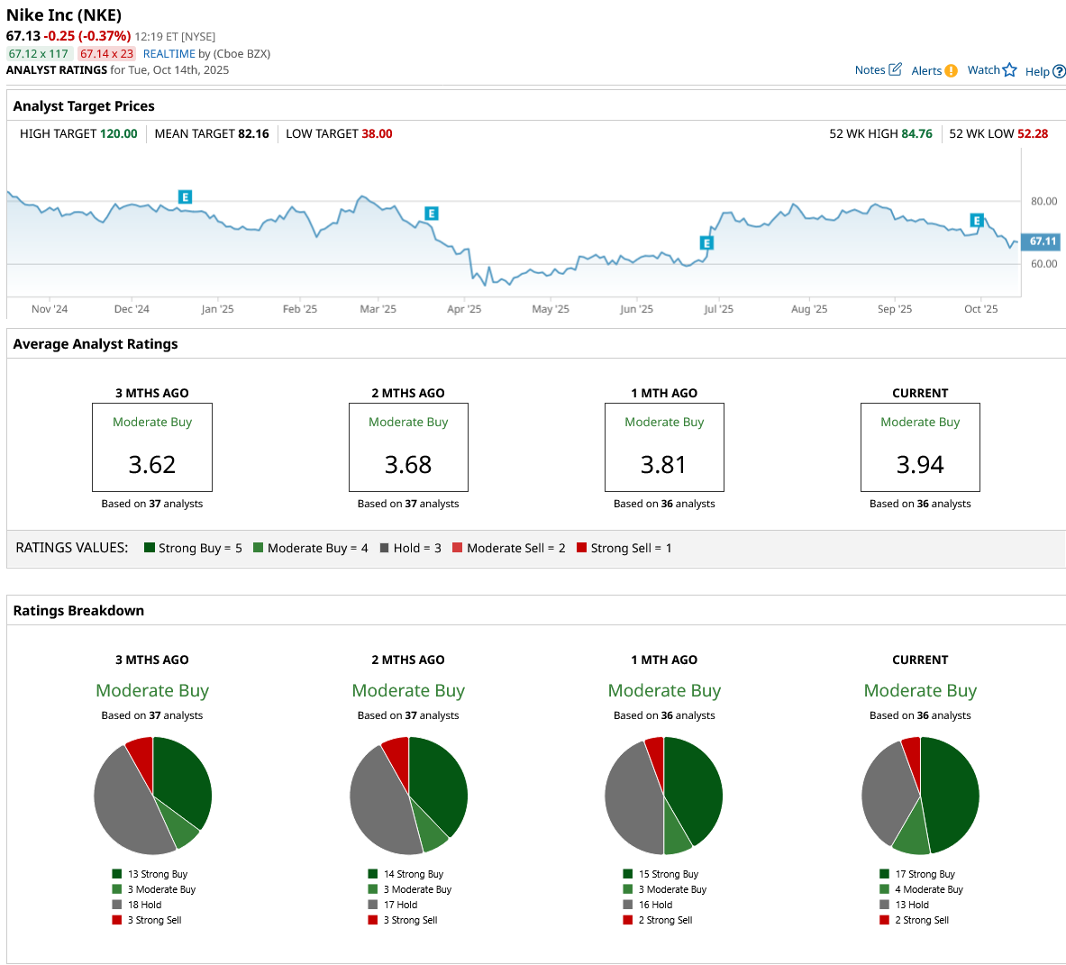 Looking at the analysts' consensus target of around $82 per share for NKE stock, there's clearly some upside potential with this stock. At least, according to analysts.