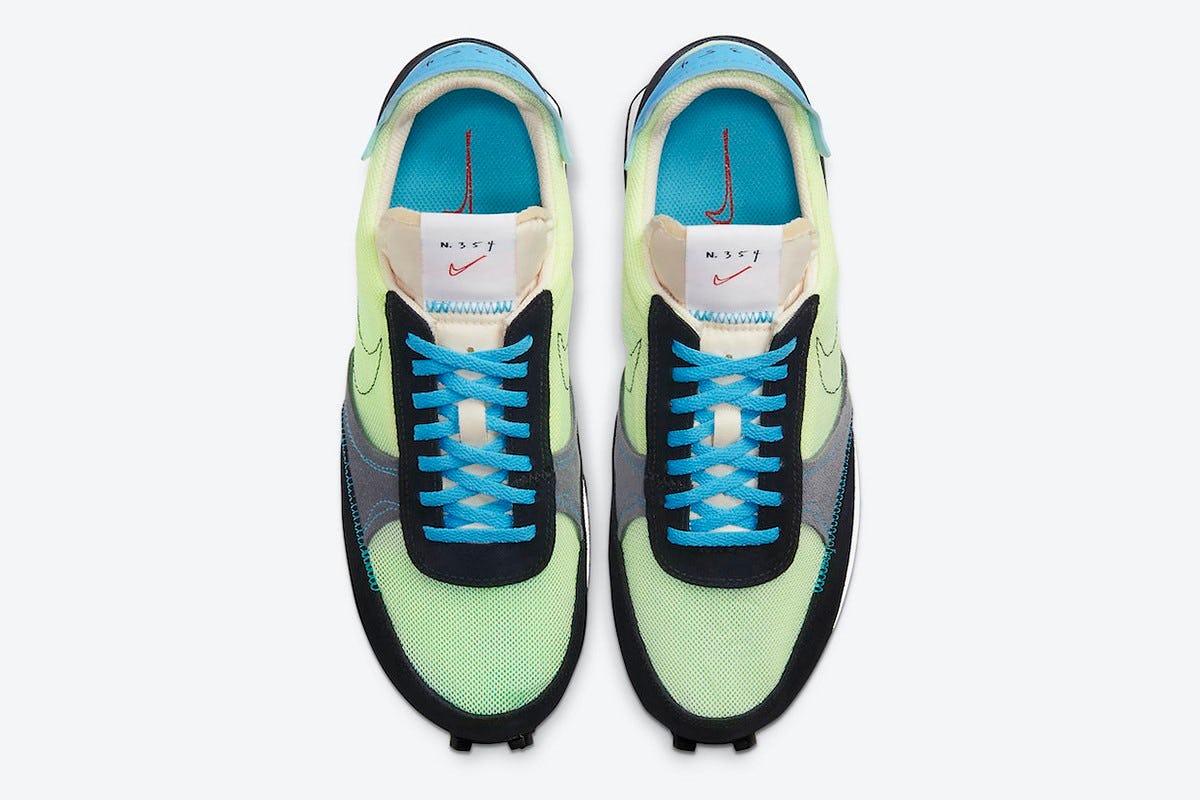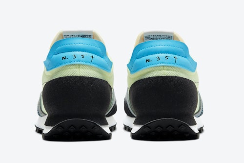 As Nike has been quite fond of since beginning to work with Virgil Abloh, the Daybreak Type gets deconstructed to make it look even more bare than its 41-year-old design roots. You can see right through the thin mesh upper, and contrast stitching emphasizes the sneaker's lines. Prints of "N. 354" with the numerals appearing as if handwritten make the Daybreak Type feel like it was plucked from the middle of prototyping.