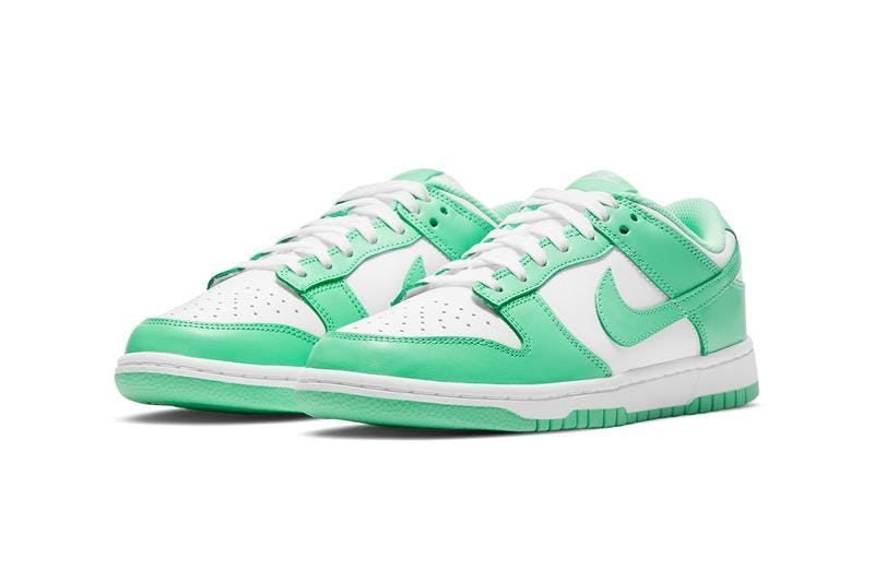 The shoe’s minty green is accented by a white leather base, keeping things simple with a classic two-tone colorblock. Branding maintains the same white hue, hitting the nylon tongue and heel tab of the Dunk Low. White laces wrap up the upper while the sneaker sits atop a white midsole and green outsole.