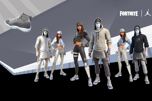 Within Fortnite, you’ll be able to dress your emote in four new outfits and cosmetics, including a digital version of the Air Jordan 11 “Cool Grey.” Dubbed the Hangtime Outfit, the Swish Outfit, and the Cool Grey Back Bling, the clothing sets offer Jordan-branded hoodies, leggings, and hats in metallic silver, blue, gray, and black tones to align with the “Cool Grey” sneaker. Alongside the shoe’s virtual release, gamers will also have access to “Dunk On ‘Em” emote, showcasing their character’s dunking skills.