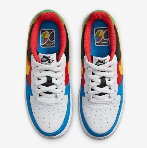 UNO’s recognizable logo appears at the heel, claiming the shoe’s color palette. Nike branding sits on the green heel tab, spelled out in blue for another pop of color. Inside the Air Force 1, red mesh lines the interior and ankle collars, while blue insoles feature a “50” motif commemorating the card game’s anniversary.