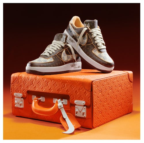 The collision of Louis Vuitton’s signature motifs, Virgil Abloh’s design language, and Nike’s classic Air Force 1 silhouette were made available exclusively through Sotheby’s. So too was a special-edition leather sneaker case with insignia from both brands included in each lot. Proceeds from the auction will go to the Virgil Abloh “Post-Modern” Scholarship Fund, which supports the education of Black students.