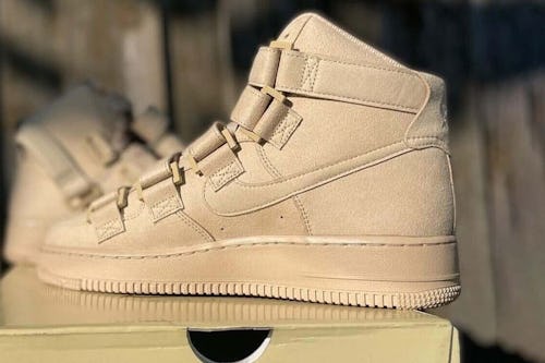 Thanks to Instagram user @iamricosuav, we get a first look at the upcoming release — which is oddly familiar to these strappy Adidas Stan Smiths. Clearly not a fan of color blocking or contrast, Eilish channeled a light brown shade for the majority of the sneaker’s construction. The color, responsible for the shoe’s “Mushroom” title, covers the suede uppers and sole. Billie didn’t change the shoe’s fundamental DNA, but she did replace the one velcro strap that usually secures the Air Force 1 with five that span from ankle to toe.