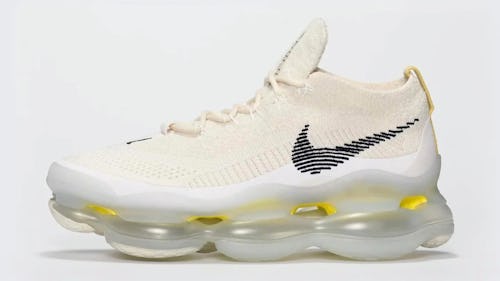 At first glance, the Scorpion looks relatively similar to the Vapormax, a sneaker that’s known for its oversized sole unit. Nike’s new model has it beat though, with a huge, full-length Airbag that caps the upper from heel to toe and uses yellow-coated air bubbles for dimension. Treading coats the outsole in various shades to add some grip, matching the beige Flyknight upper.