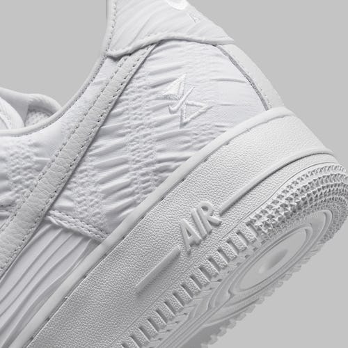 Pleated white panels replace the Air Force 1’s classic white leather upper, boasting a texture similar to linen or paper ribbon. Every other panel seems to take on a ruched look, while those in between stick to classic pleating. The white cloth texture makes the sneaker feel ready for summer, granted the reimagined AF1 releases by then.