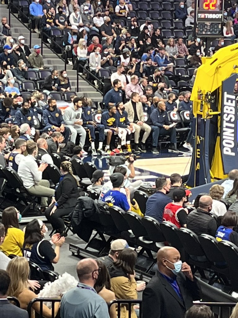 The two most engaged “fans” in this game are Nikola Jokic and Jamal Murray. Both of them have been yelling out defensive coverages, standing after threes and talking to the coaching staff throughout. They’ve also been slowly inching closer to each other on Denver’s bench. pic.twitter.com/ucdYLez9Pr – 10:01 PM