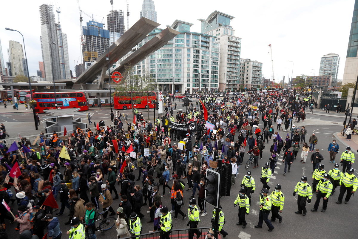 A police statement said nine people had been arrested and officers were "continuing to engage" with protesters who had gathered in a park in south London after the march.