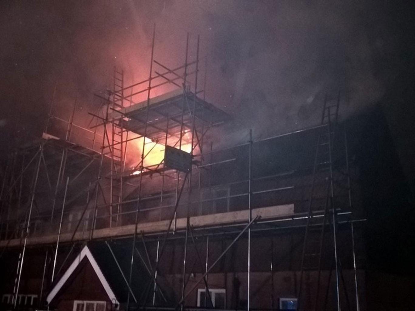 "Firefighters are working hard to contain the fire and are tackling it from all sides of the property as well as from above using an aerial ladder platform."
