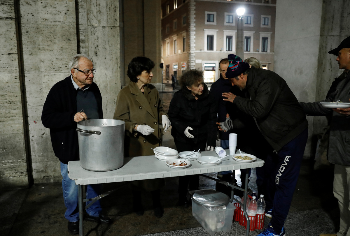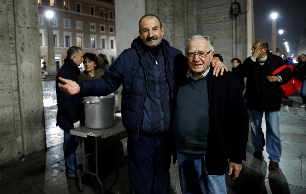 On Saturday nights, they set up under a portico outside St. Peter's Square to feed the growing number of homeless who sleep in the area, where Pope Francis has also opened medical and bathing facilities for them.