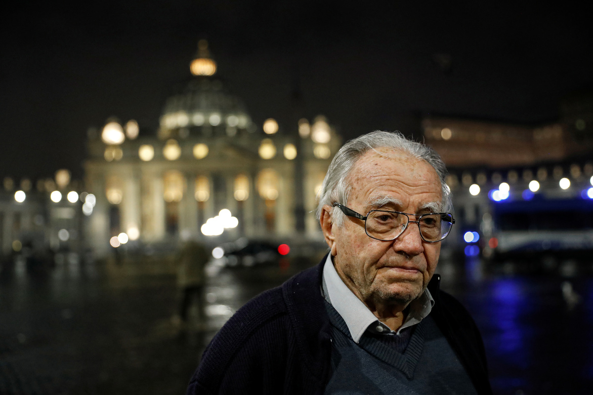 Dino Impagliazzo, Rome's 90-year-old 'chef of the poor', is pictured by St. Peter's Square as he gives food to homeless people living outside the Vatican colonnades, in Rome, Italy, February 1, 2020. Picture taken February 1, 2020. REUTERS/Remo Casilli