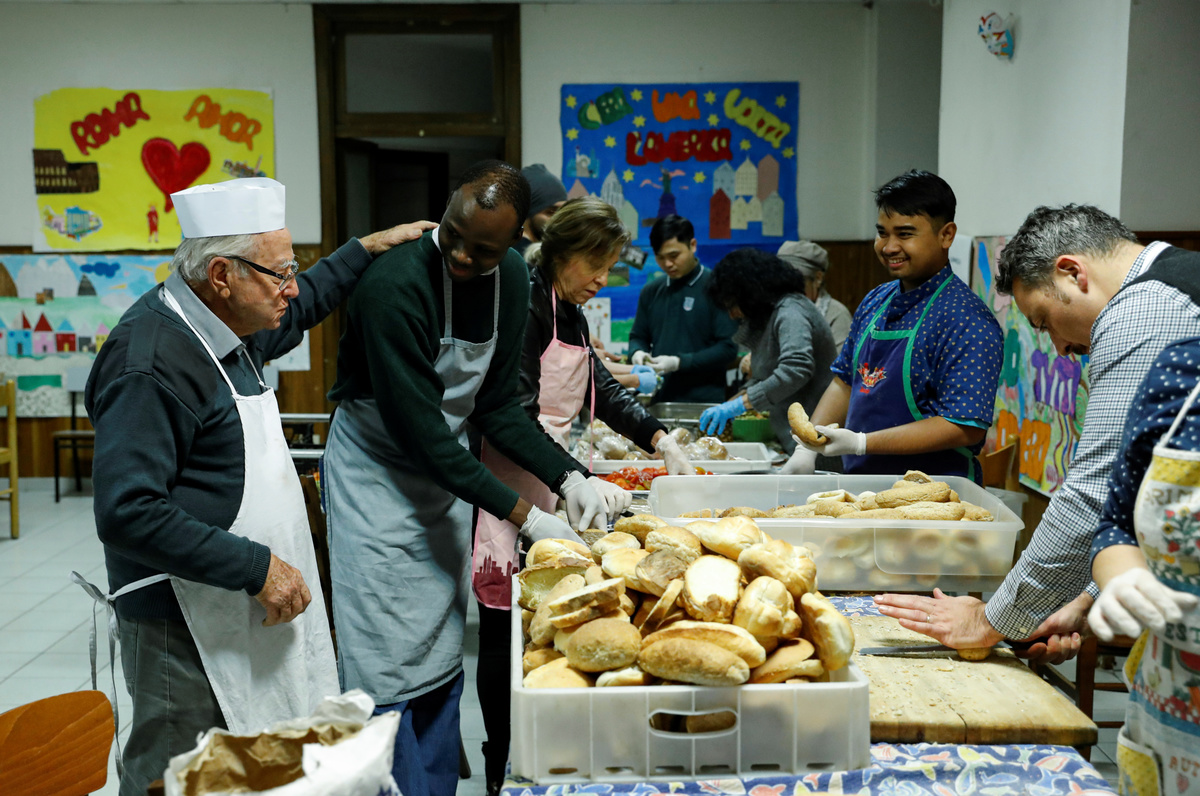 "We try to involve more and more people so that Rome becomes a city where people can love each other, you know?" he said while preparing soup in a professional kitchen. "It's solidarity".