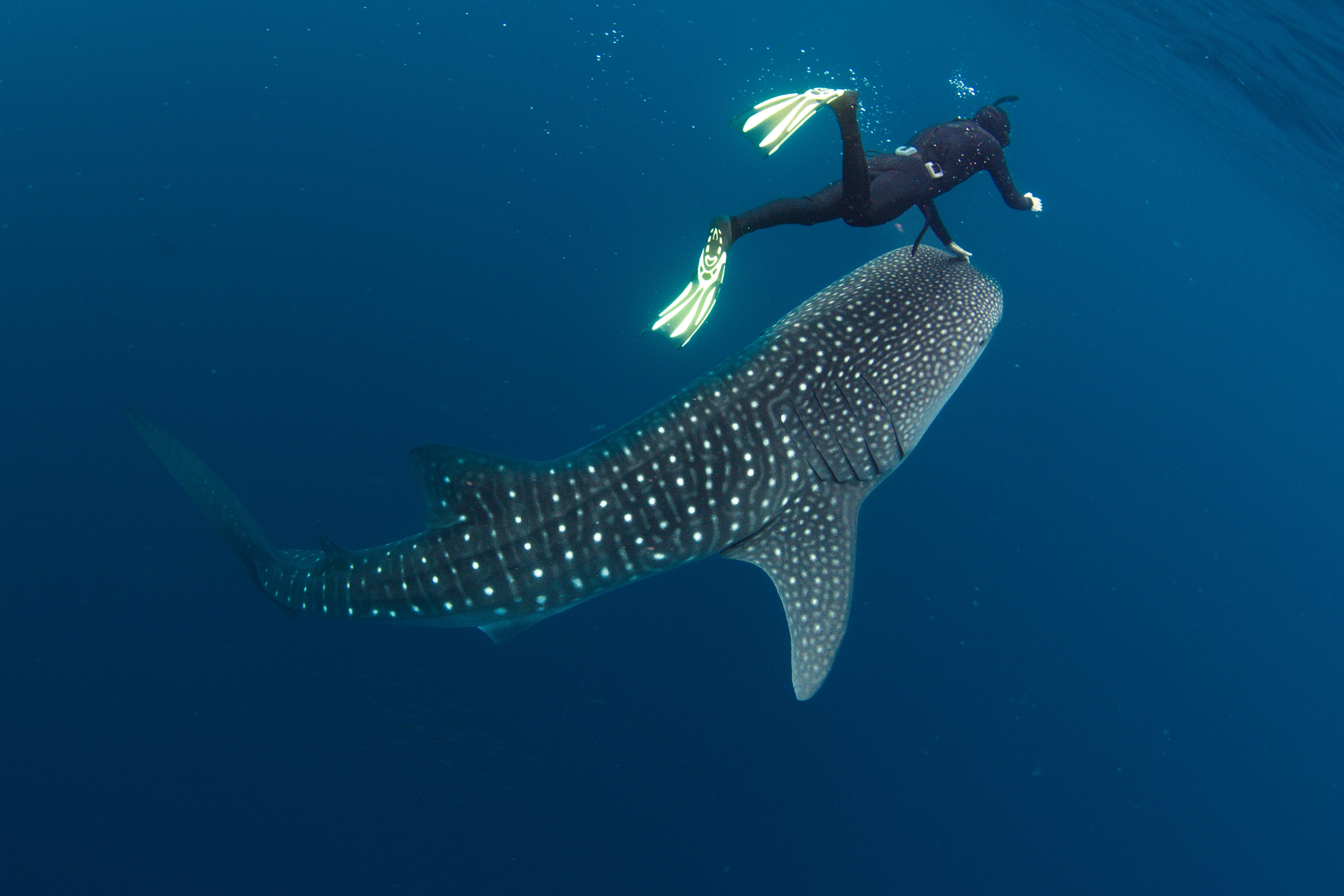 "I think that whale sharks probably look at me and go 'what on earth is that inelegant, poorly swimming thing', and when I start scraping the copepods off the lips, like, 'oh my god, it's the biggest cleaner fish I've ever seen'."