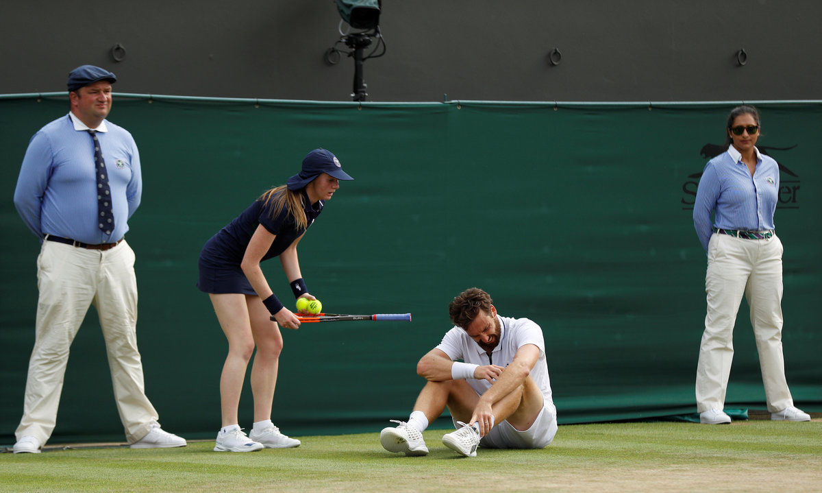 The third set tiebreak was more dramatic with Gulbis going off for treatment after slipping and hurting his left knee and coming back on with it heavily bandaged.