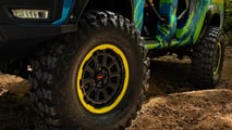 It might not be as "rapid" as Chris Forsberg’s Racing Patrol, but the Frontier Rapid Runner is a beast that’s ready to play on any trail you throw at it. Nissan kicks off the party by seriously upgrading the underpinnings of this pickup. The team borrows beefier suspension bits from the larger Titan and swaps in the Titan’s entire rear axle. This Frontier stands taller thanks to a two-inch body lift, custom Bilstein components, and massive 37-inch tires.