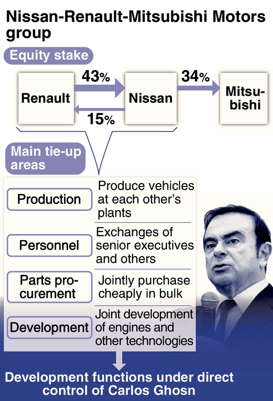 To ensure management of the alliance does not lose its vitality, Ghosn is thought to favor leaving the capital ties as they are and allowing the three carmakers -- Mitsubishi Motors Corp. also is part of the group -- to retain a degree of individual identity. The decision to integrate the development functions and other steps also reveals an intention to accept there is a necessity to show some consideration to the French government's position.