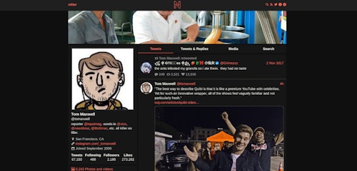 So, Nitter is cool in that there's no tracking, but it's obviously not a true alternative to Twitter because you can't log in and view your feed or post tweets. You can, however, install browser extensions that will automatically redirect links to tweets and profiles to the Nitter version. Here what my Twitter profile looks like on Nitter: