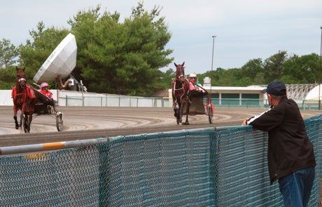 “I really don't have any apprehension about not wearing a mask,” he said as he and some friends perused the odds for the upcoming first race. “People that aren't vaccinated may want to wear a mask for their own protection, but that's up to them.”