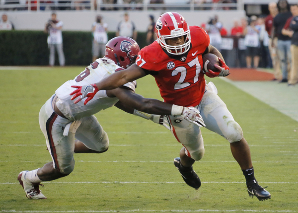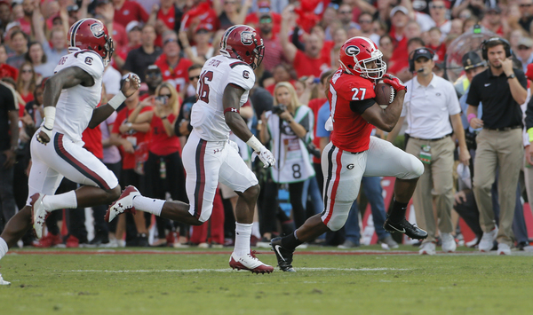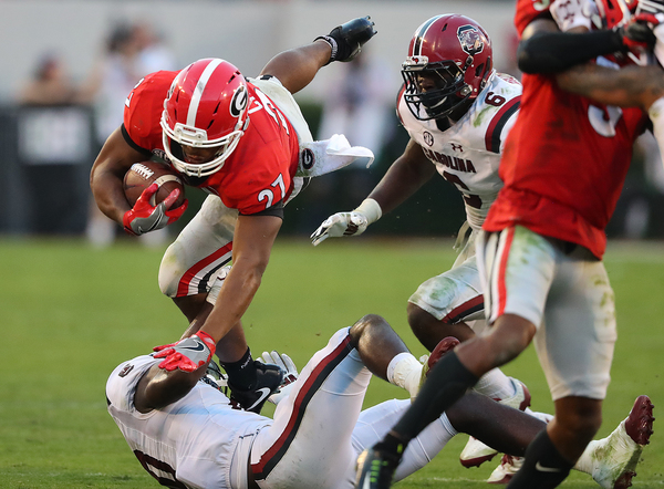 Georgia combined a better-than-advertised passing game with its usual gritty ground attack to out-fight a pesky offensive bunch of Gamecocks. Jake Fromm had a pretty good day in the air, finishing with 196 yards on 16 of 22 passing and two touchdowns. Georgia also went over 200 yards rushing for the eighth time in nine games. Nick Chubb led the way with 102 yards on 20 carries. Sony Michel added 81 yards and a touchdown on 16 carries.