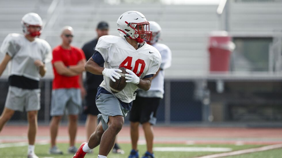 “This will be the first time since eighth grade that Ball is facing players his own age,” Palatine coach Corey Olson said. “He broke a lot of tackles last year, but I expect him to be even more of a yards-after-contact guy this season. His physical strength and top end speed are just different than you see out of most high school backs.”