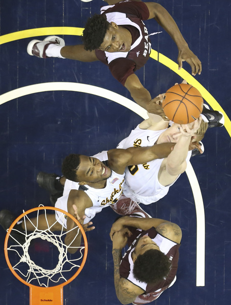 The Shockers made 5 of 11 3s in the first half with Frankamp making 3 of 5. MSU's zone defense limited the Shockers in the lane. The Bears swarmed Morris, who made 2 of 7 shots against the double-teams.