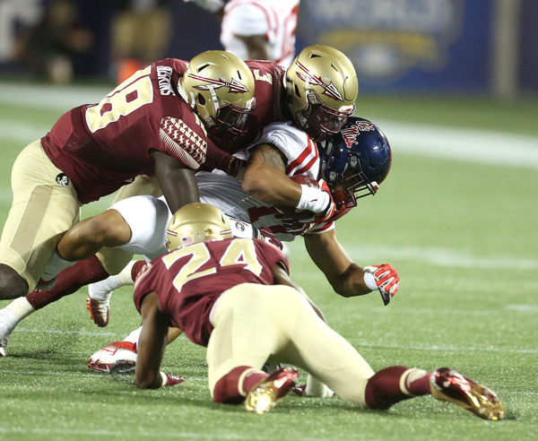 Ole Miss managed to contain star running back Dalvin Cook to 192 total yards, including 101 receiving, but Jimbo Fisher called 52 pass plays for his young quarterback to secure the win.