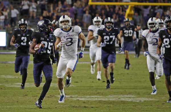After five years of close games against one of the perennially worst teams in the Big 12, fourth-ranked TCU (7-0, 4-0) obliterated the Jayhawks in a prime-time telecast on FOX and left no potential for a stain on their College Football Playoff resume.