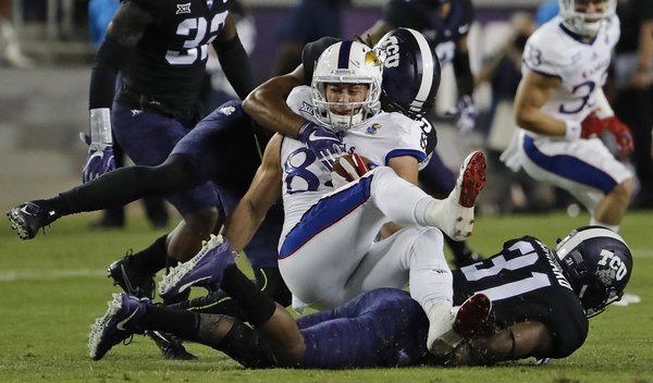 Until their final possession, Kansas had 4 yards on 42 plays, including four sacks among 11 tackles for loss.