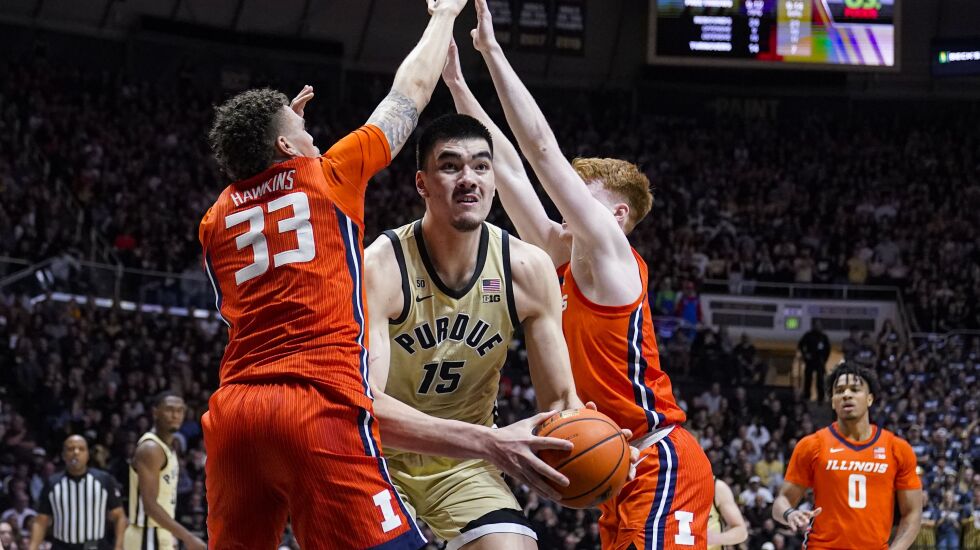 The Boilermakers (26-5, 15-5) led by 24 early in the second half before the Illini rallied and eventually tied the game at 67 on a free throw by Matthew Mayer with 1:17 to go. Edey’s layup gave Purdue a 69-67 edge with 56 seconds left, and Illinois turned over the ball with 31 seconds left.
