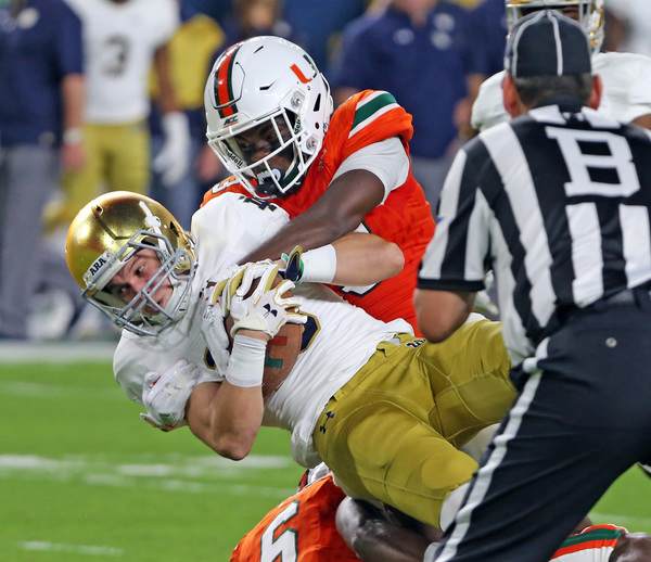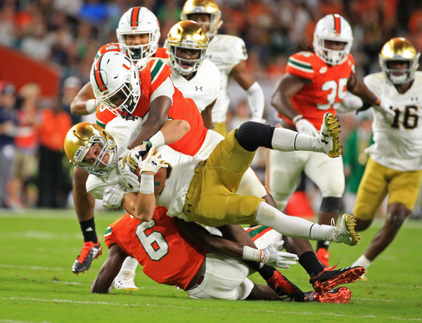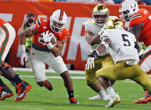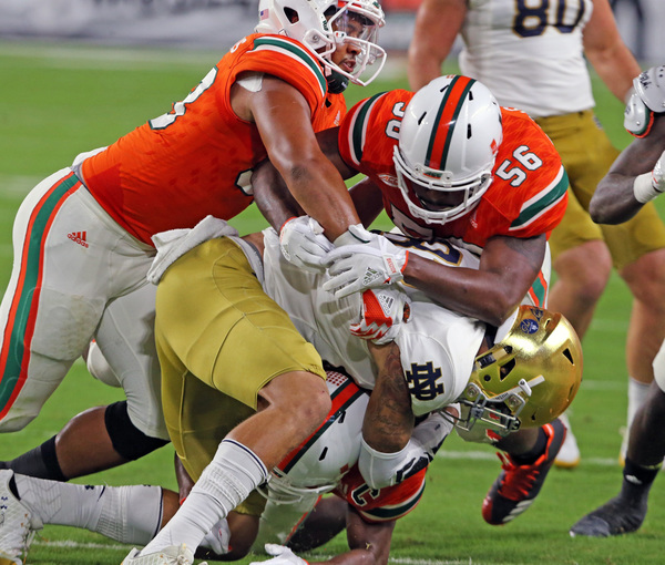 Then there was Miami's defense, which was challenged with stopping Notre Dame's dominant rushing attack, an attack that featured six different players averaging at least 6 yards per carry.