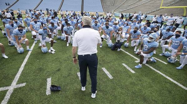 UNC running backs Michael Carter and Javonte Williams posted consecutive runs of 18 and 23 yards on the drive and set the Heels up at the Tech 12-yard line. Dazz Newsome took care of the rest with his second score. It was the first drive of the fourth quarter and it helped UNC stuff the Hokies' momentum, gave its tired defense a much-needed breather and, most importantly, made the score a two-possession game at 49-37.