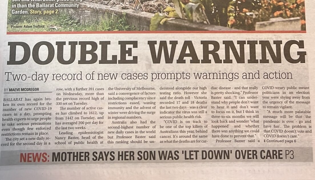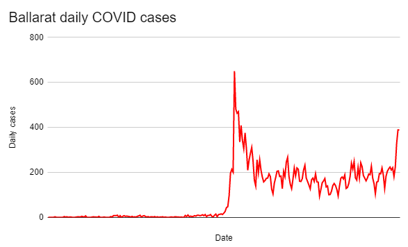 On May 9, Ballarat recorded 329 new cases of COVID-19 — the ninth highest daily total at the time.