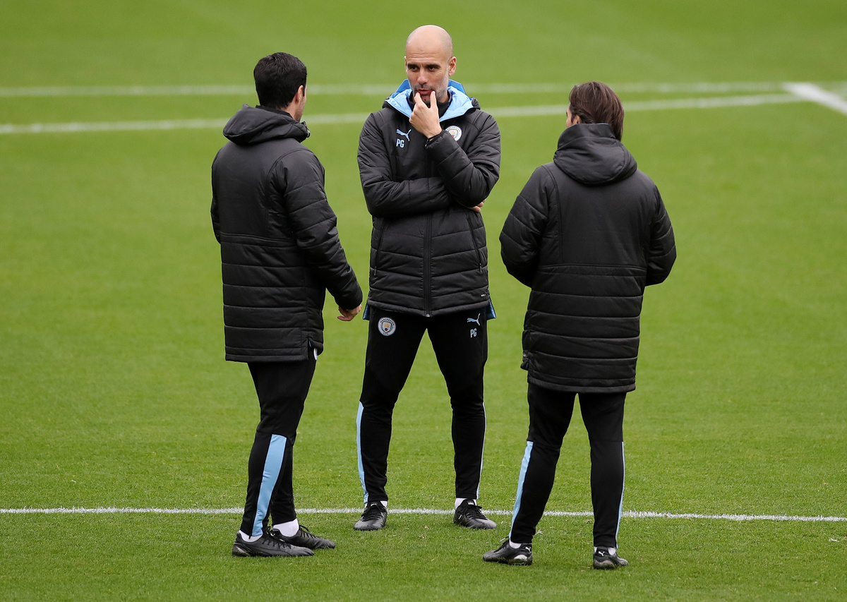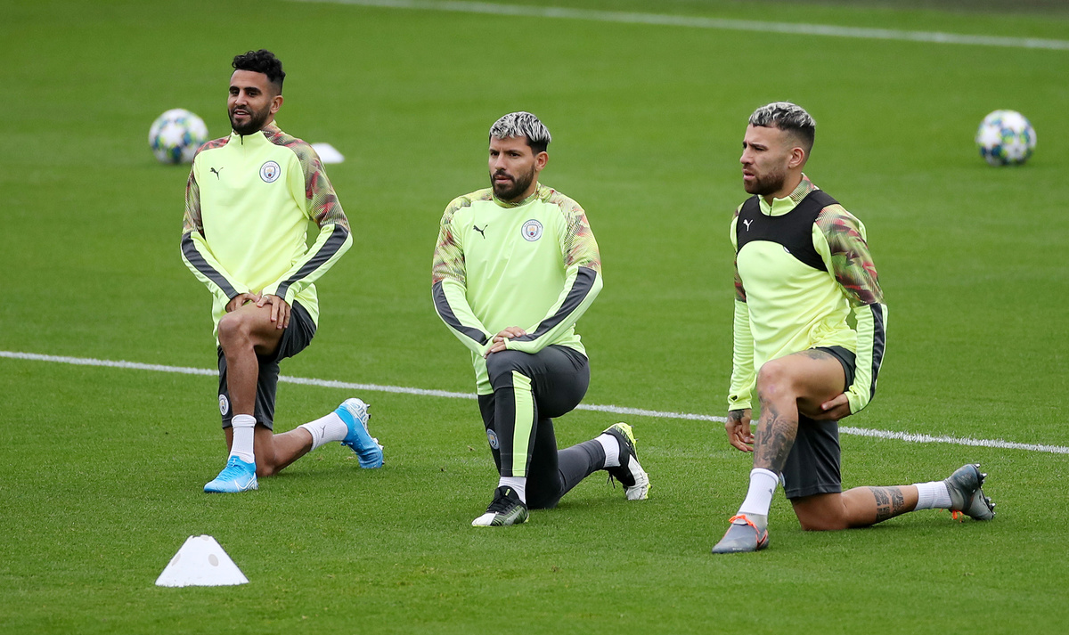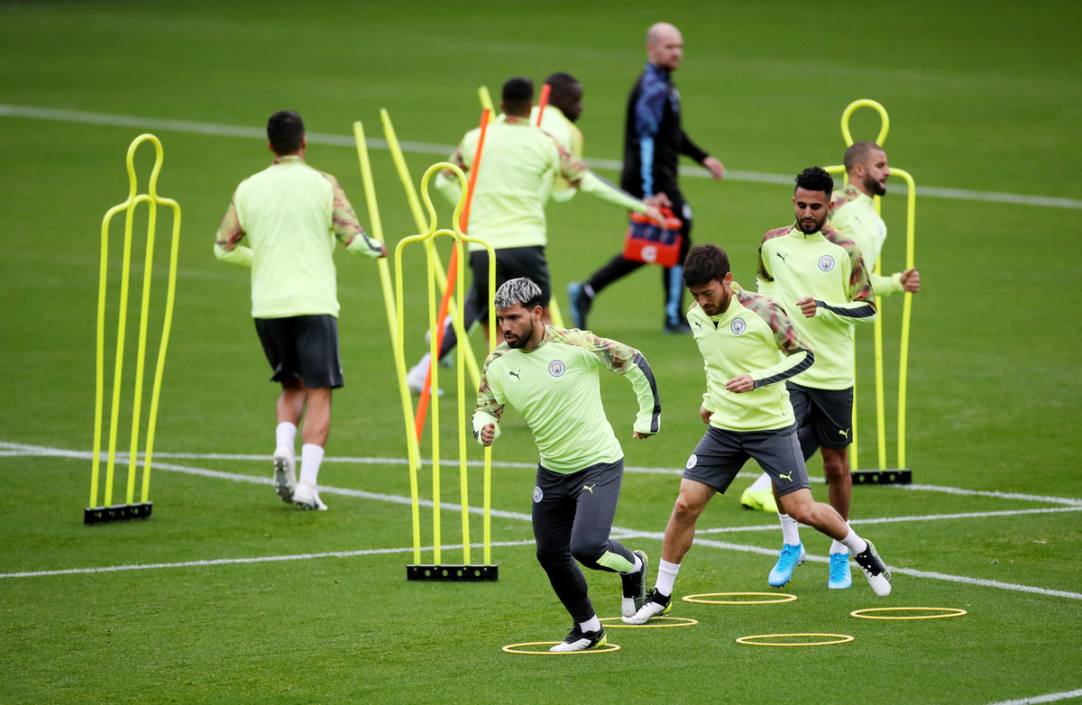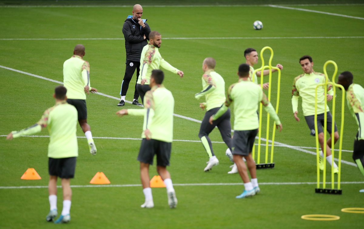 Soccer Football - Champions League - Manchester City Training - Etihad Campus, Manchester, Britain - September 30, 2019 Manchester City manager Pep Guardiola looks on during training Action Images via Reuters/Carl RecineSoccer Football - Champions League - Manchester City Training - Etihad Campus, Manchester, Britain - September 30, 2019 Manchester City's Riyad Mahrez, Sergio Aguero and Nicolas Otamendi during training Action Images via Reuters/Carl RecineSoccer Football - Champions League - Manchester City Training - Etihad Campus, Manchester, Britain - September 30, 2019 Manchester City's Gabriel Jesus during training Action Images via Reuters/Carl RecineSoccer Football - Champions League - Manchester City Training - Etihad Campus, Manchester, Britain - September 30, 2019 Manchester City's Sergio Aguero with team mates during training Action Images via Reuters/Carl RecineSoccer Football - Champions League - Manchester City Training - Etihad Campus, Manchester, Britain - September 30, 2019 General view during training Action Images via Reuters/Carl RecineSoccer Football - Champions League - Manchester City Press Conference - Etihad Campus, Manchester, Britain - September 30, 2019 Manchester City manager Pep Guardiola during the press conference Action Images via Reuters/Carl RecineSoccer Football - Champions League - Manchester City Press Conference - Etihad Campus, Manchester, Britain - September 30, 2019 Manchester City manager Pep Guardiola during the press conference Action Images via Reuters/Carl Recine