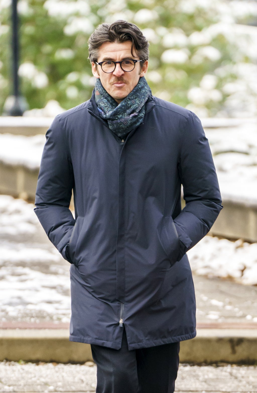 He sat in the dock on Friday wearing a dark suit, a royal blue shirt and a dark tie.