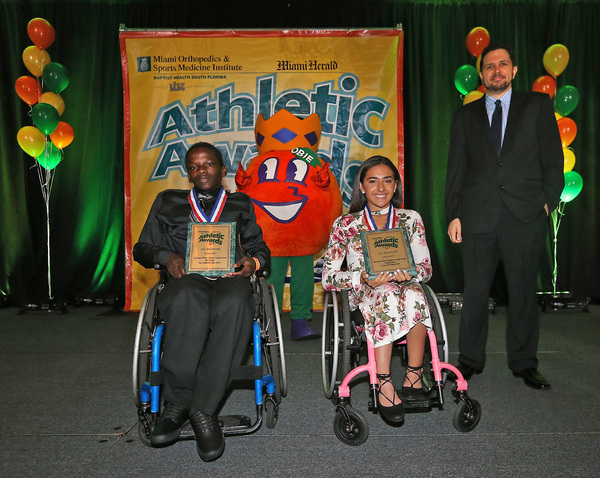 Both Bouie and Matos are confined to wheelchairs. But both of them are also high school adaptive track and field athletes. And on Thursday, they were honored with the Leo Suarez/Walter Krietsch Courage Award at the Miami Herald's All-Broward Athletic Awards breakfast at the Signature Grand in Davie.