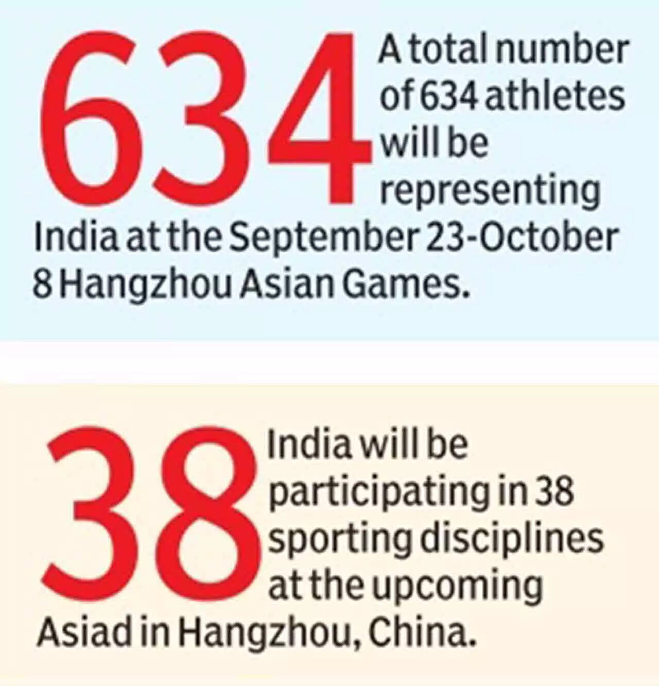 NEW DELHI: There will be no presence of 'extra officials' in the Hangzhou-bound Asian Games delegation of coaches and support staff for Indian athletes after the sports ministry refused to clear any of the proposed names in 38 sports disciplines in which country's 634 athletes will be participating at the September 23-October 8 continental meet.