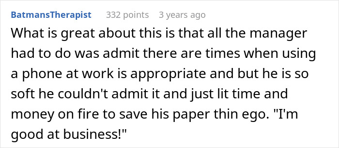 Would you break a rule if you knew doing so would help solve a problem for your boss? One guy might have… had his boss chosen to be a bit kinder to him and his colleagues. The employee has told how they always had to adhere to a strict “no mobile phones at work” policy. No ifs or buts. And how that very policy came back to bite the bosses on one of the busiest work days of the year.