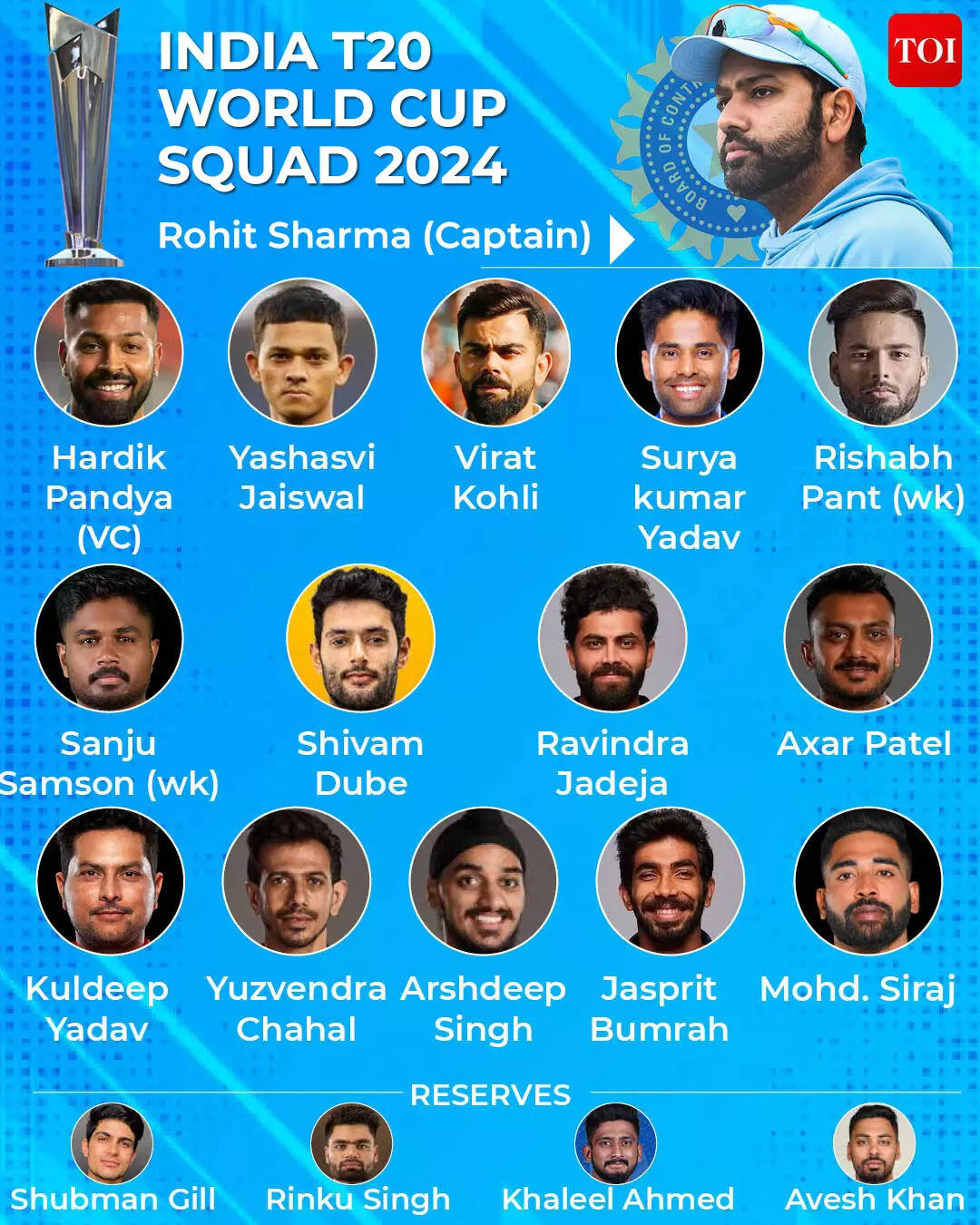 India's T20 WC Reserves: GT: Shubman Gill (batter); KKR: Rinku Singh (batter); DC: Khaleel Ahmed (bowler); RR: Avesh Khan (bowler).