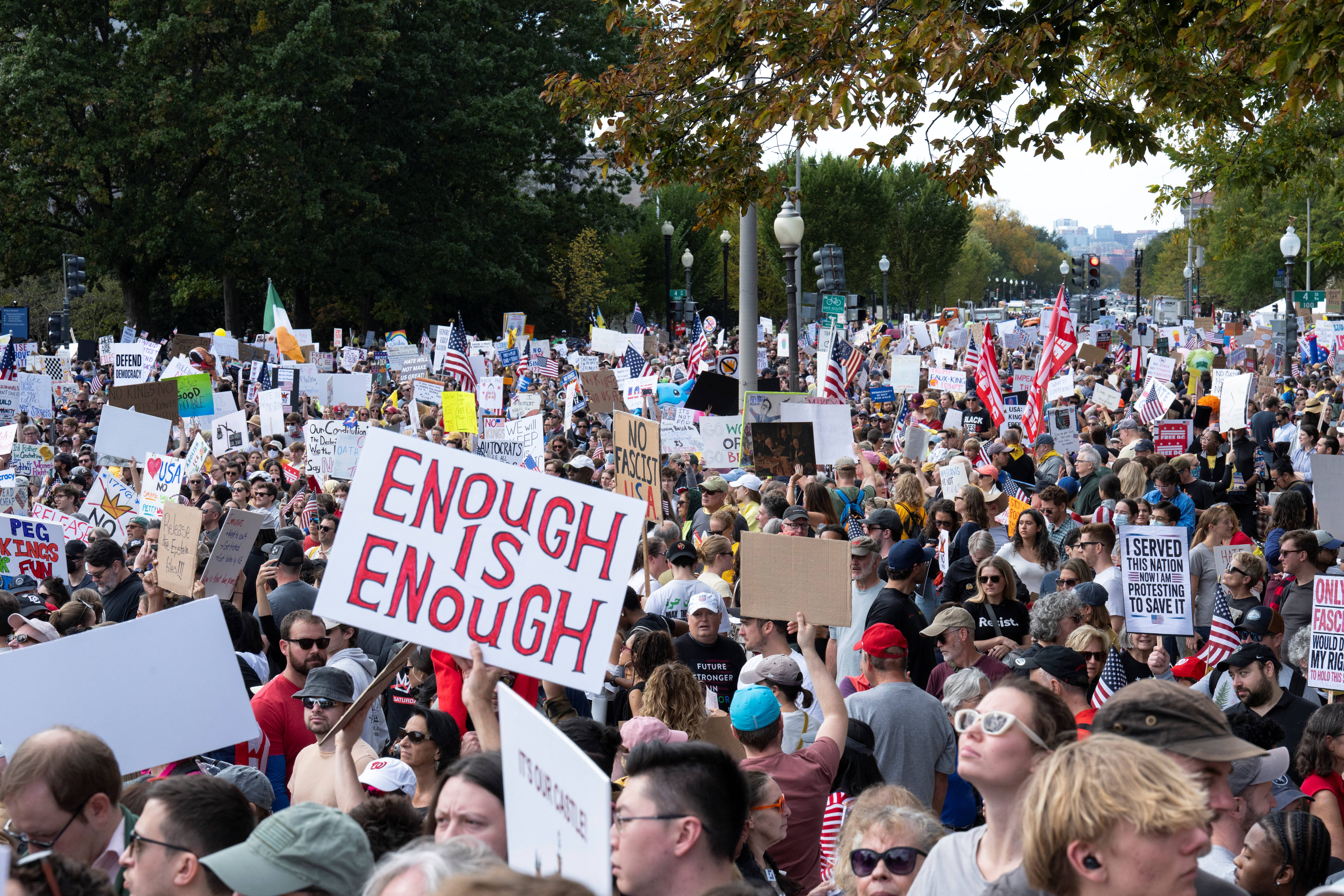 As the government shutdown approaches its third week, millions of demonstrators joined protests in more than 2,500 cities and towns in all 50 states, with several global cities joining in, to stand up to what organizers called Trump’s “authoritarian power grabs.”
