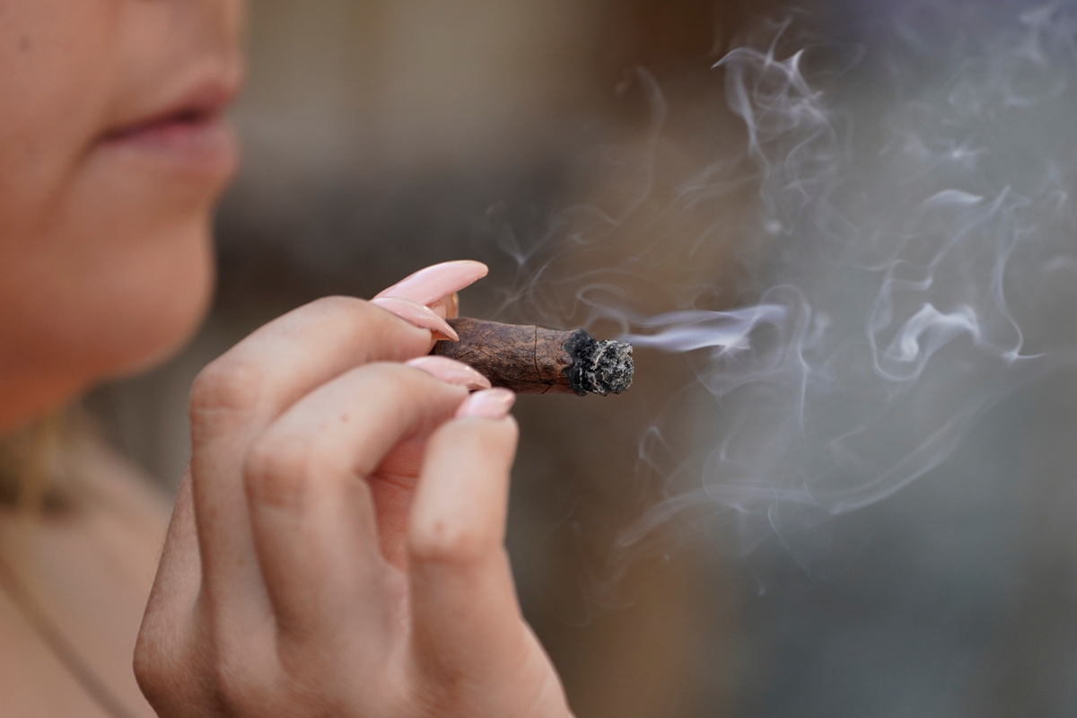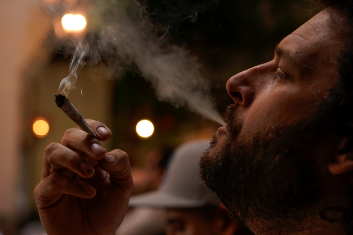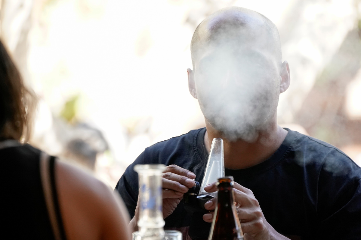 A customer smokes at Lowell Farms, America's first official Cannabis Cafe offering farm-to-table dining and smoking of cannabis in West Hollywood, California, October 1, 2019. REUTERS/Mike Blake